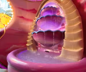 Inspired by the protective carapace of many arthropods, the sculpture is adorned with a mosaic of nearly 400,000 bedazzled acrylic fingernails, hundreds of which are hand painted by local nail artists. Inside the sculpture resides a vibrant multi-tiered fountain that sings a collection of pop and hip-hop anthems that embody survival. Visitors are invited to toss specially made tablets, or “Wishing Wafers” into the water, effusing a scent of Florida Water as they fizz and dissolve in an offering to survivors of all kinds.