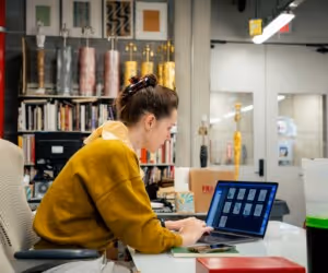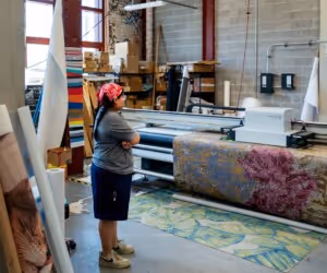 The Alpha Workshops collaborated with the PHA Digital Print Lab to produce blackout shades for the Grand Hall, installed in advance of the Powerhouse: International festival. Using the UV SwissQ printer, the Digital Print Lab produced a design by Emma Hollister-Colby of The Alpha Workshops, based on the pre-existing Gilda pattern created by Alpha team member Erik Savage.