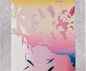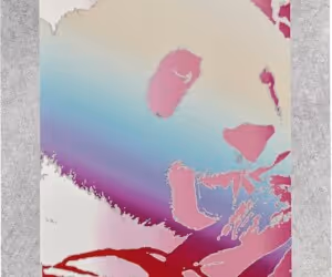 Rob Pruitt was born in Washington D.C. in 1964 and studied at the Corcoran College of Art and Design in Washington D.C. and Parsons School of Design in New York. He lives and works in New York.Since the early 1990s, Rob Pruitt’s risk-taking investigations into American popular culture have taken many forms. From his notorious Cocaine Buffet (1998) and glitter portraits of Pandas or the significant Suicide Paintings series, Pruitt’s works are a surreal and extravagant interpretation of the pop world, a kaleidoscopic look towards mass culture by exploring the multiples aspects and the paradoxes of our present time. Throughout his career, Rob Pruitt has fine-tuned his ability to express nuanced ideas about culture and society through the re-interpretation of common objects and materials, all filtered through a sense of humour and irony. With his Mask series, the artist continues his pursuit of depicting the complexities of personality and emotions. The facial gestures indeed are cut into the canvas with a razor – destructive and creative at the same time, these gestures are married to an accumulation of gradients, patterns, and prints to create a character.