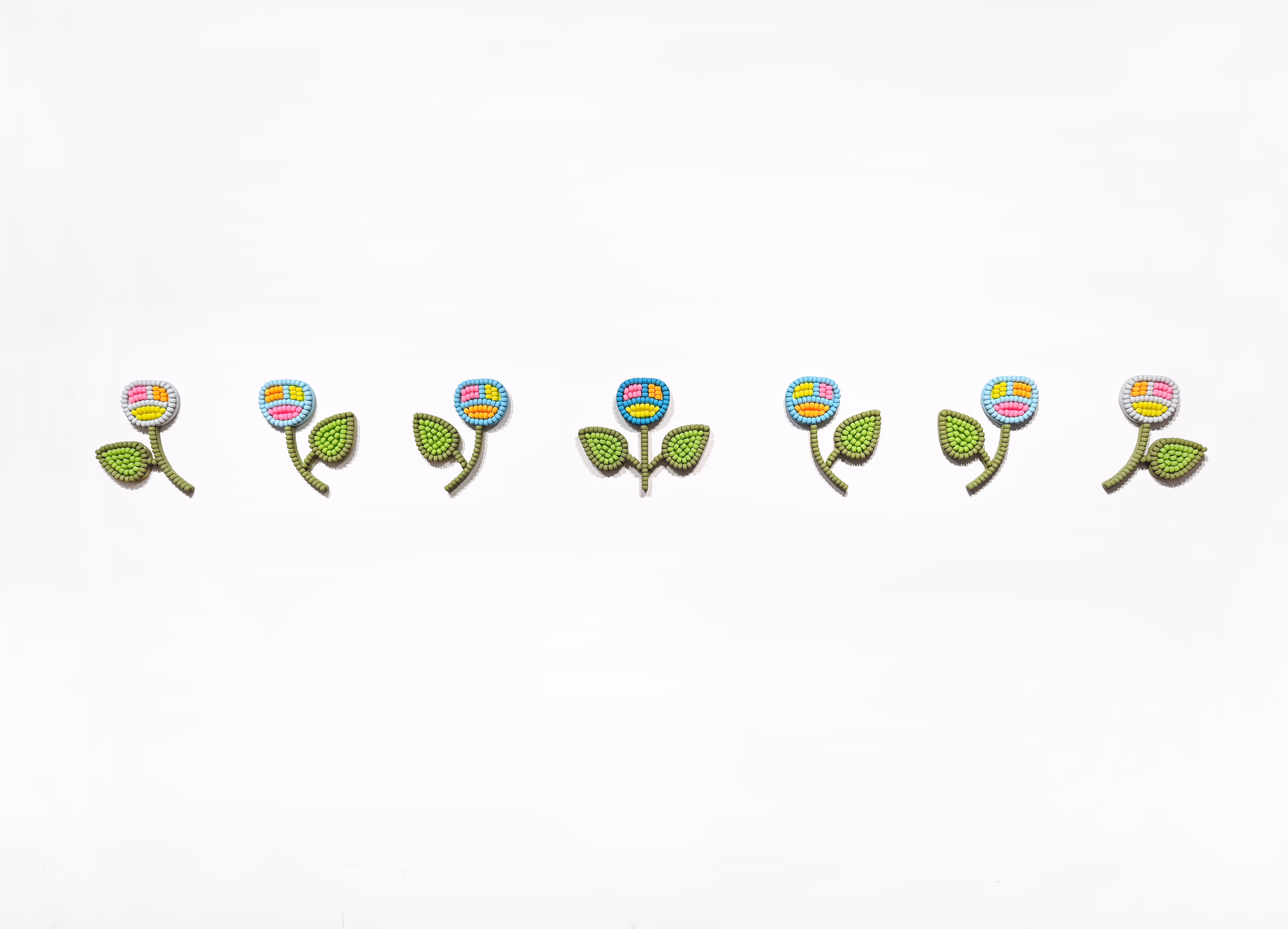 Renée Condo, Pewiteget, 2026 Wood beads, acrylic paint, epoxy on wood panel 13 x 11 in each, 33 x 27.9 cm each
