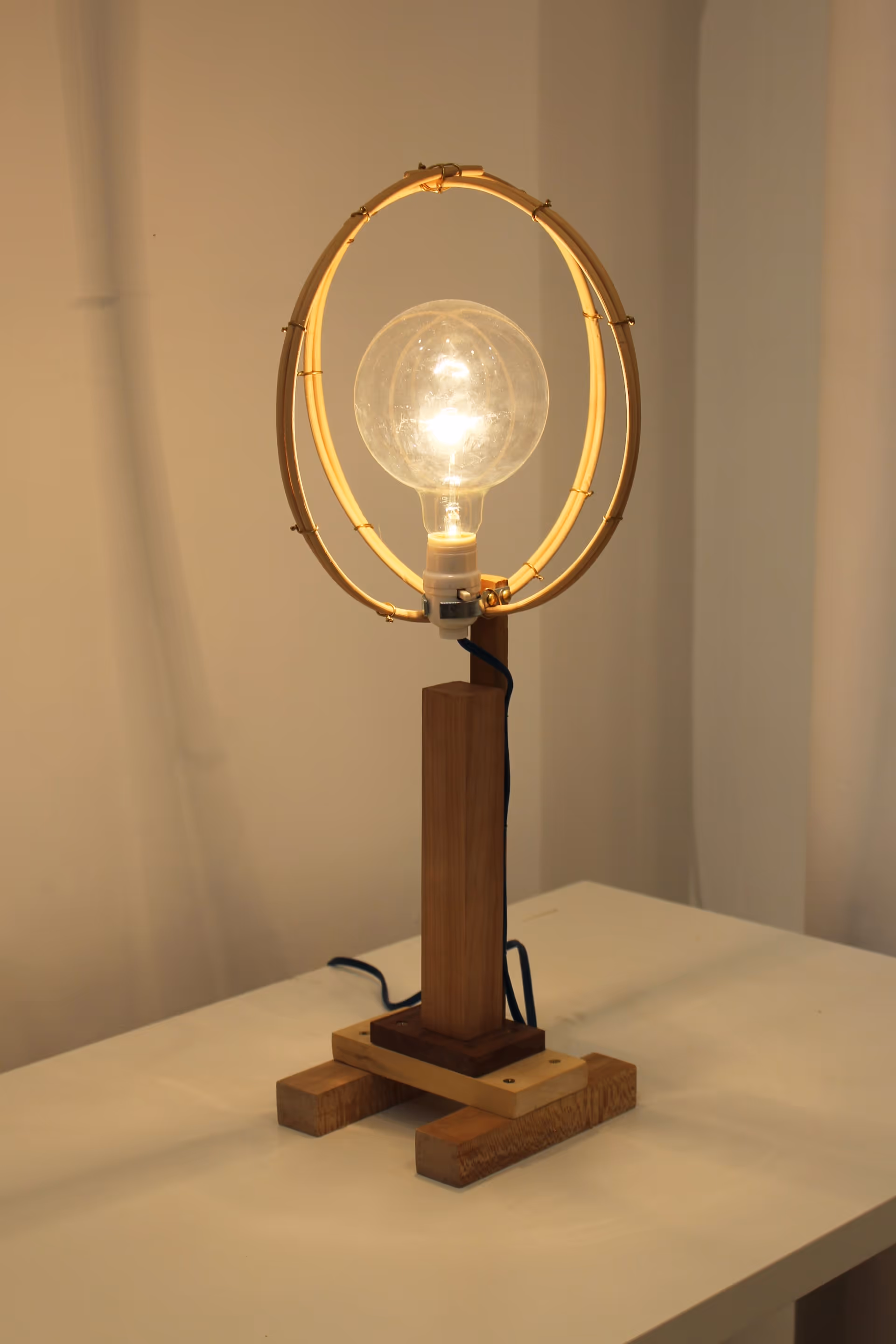 Image 1: Tierno, "Sergent", 2025, various species of wood, light bulb, 18 x 10 x 8 inches.