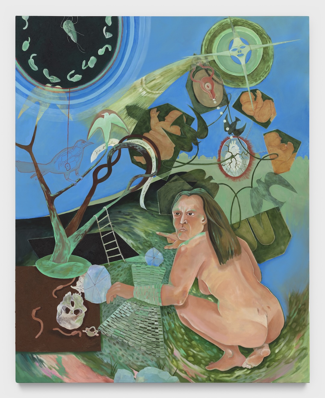 Taking the form of mixed media painting and illustrated ceramic vessels, Astrid Terrazas’s (b. 1996) symbolic work re-writes worlds. With unflinching vulnerability, Terrazas conveys stories that push personal and communal trauma towards tangible healing. Working in an illustrative, highly detailed style, Terrazas’s multimedia paintings resemble a visual dream diary full of transient figures, archaic symbols, and complex new realities. Merging dreamscapes, Mexican ancestral folklore, lived experiences, and unearthly transfigurations, Terrazas’s personal range of recurring motifs function as artifacts of protection and evoke universal metaphors of transformation. Terrazas received her BFA in Illustration from Pratt Institute in 2018. She has exhibited work at P·P·O·W, New York, NY; Y2K Group, New York, NY; Andrea Festa Fine Art, Rome, Italy; Marinaro, New York, NY; Fort Makers, New York, NY; Gern en Regalia, New York, NY; Front Gallery, Houston, TX; 98 Orchard St, New York, NY; Nicodim, New York, NY; Lyles & King, New York, NY; Art in Common, Los Angeles, CA; Deli Gallery, Mexico City, Mexico, and UTA Artist Space, Los Angeles, CA; among others. Her work has been featured in articles in Art in America, Art Maze Mag, The Art Newspaper, The Brooklyn Rail, and Elephant Magazine. Terrazas was featured in 52 Artists: A Feminist Milestone at The Aldrich Contemporary Museum of Art, Ridgefield, CT in 2022 and Perhaps the Truth at Ballroom Marfa, Marfa, TX in 2023. In 2024, Terrazas presented solo exhibitions with Lodos Gallery at Condo Mexico City, Mexico, and FOUNDRY SEOUL, South Korea and presented in Ward’s inaugural group show New York…NOW!