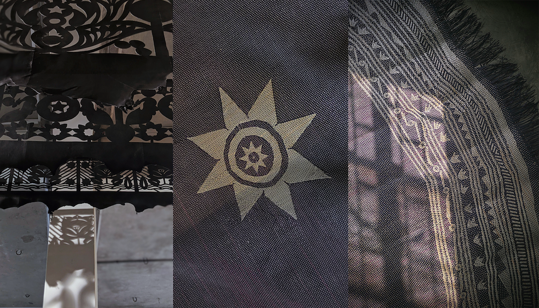 ঝালর / Jhalor, is a decorative fringe used in Bangladeshi rituals to adorn sacred spaces and ceremonial textiles, symbolizing auspiciousness and cultural reverence. By marking a defined area, it creates a visual and spatial boundary, emphasizing that the conversation or gathering beneath it is intentional and significant.
