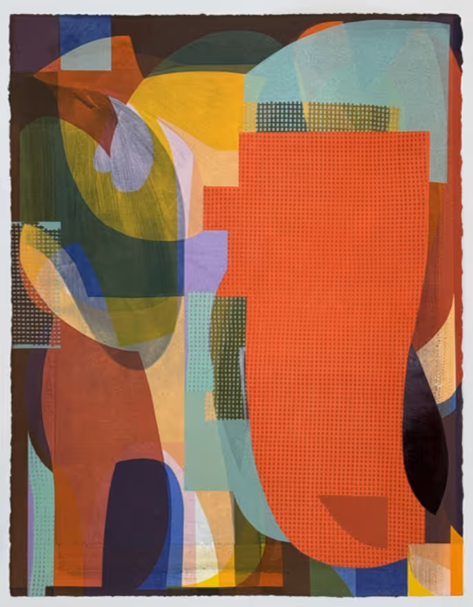 Ulrike MΓΌller. Entre Nous, 2025. Monotype with chine collΓ© and pochoir. Sheet: 29 x 22 in.