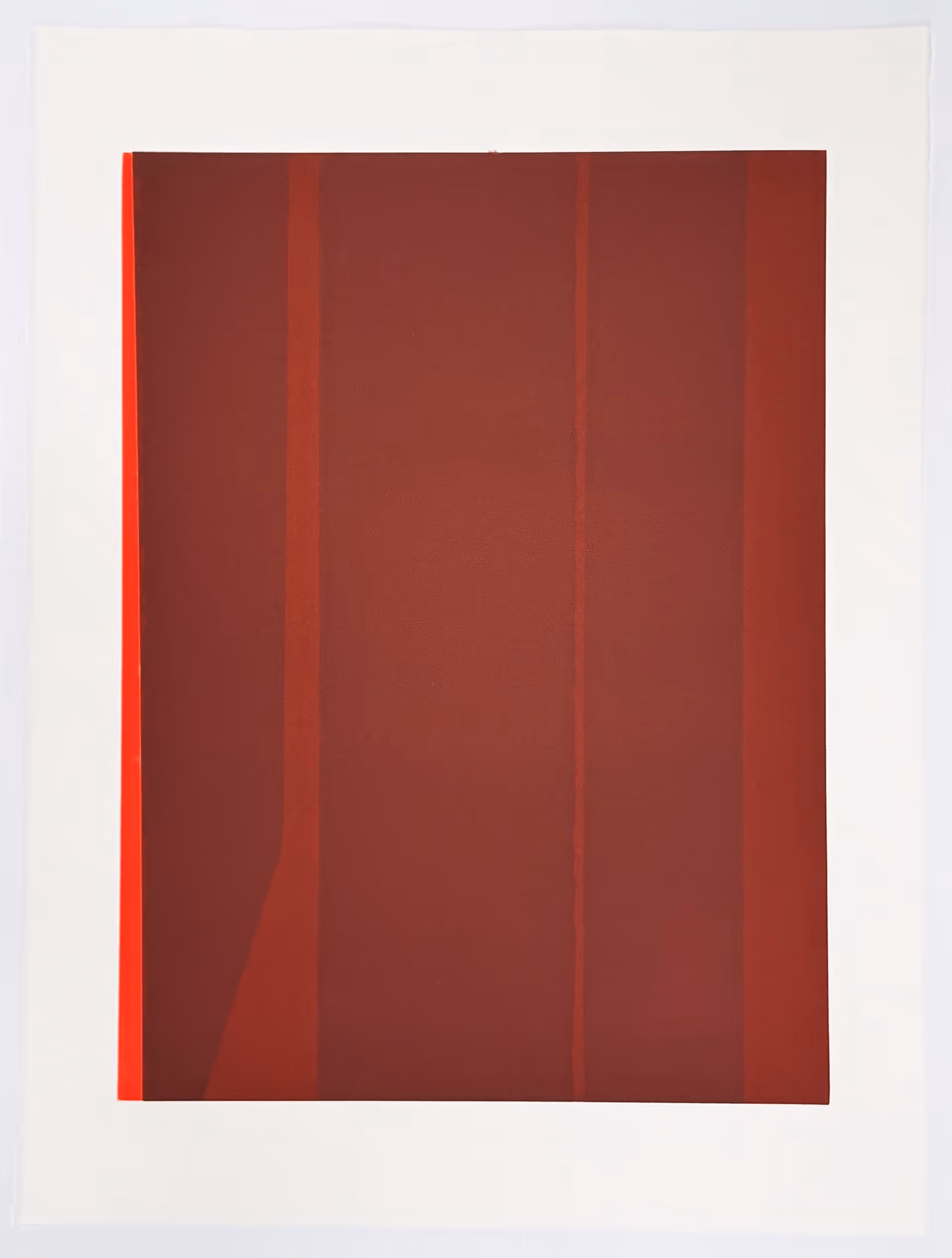 Jennie C. Jones. Red, Open Strings, 2025. Monotype. Image: 24 x 18 in.; sheet: 30 x 22 in.