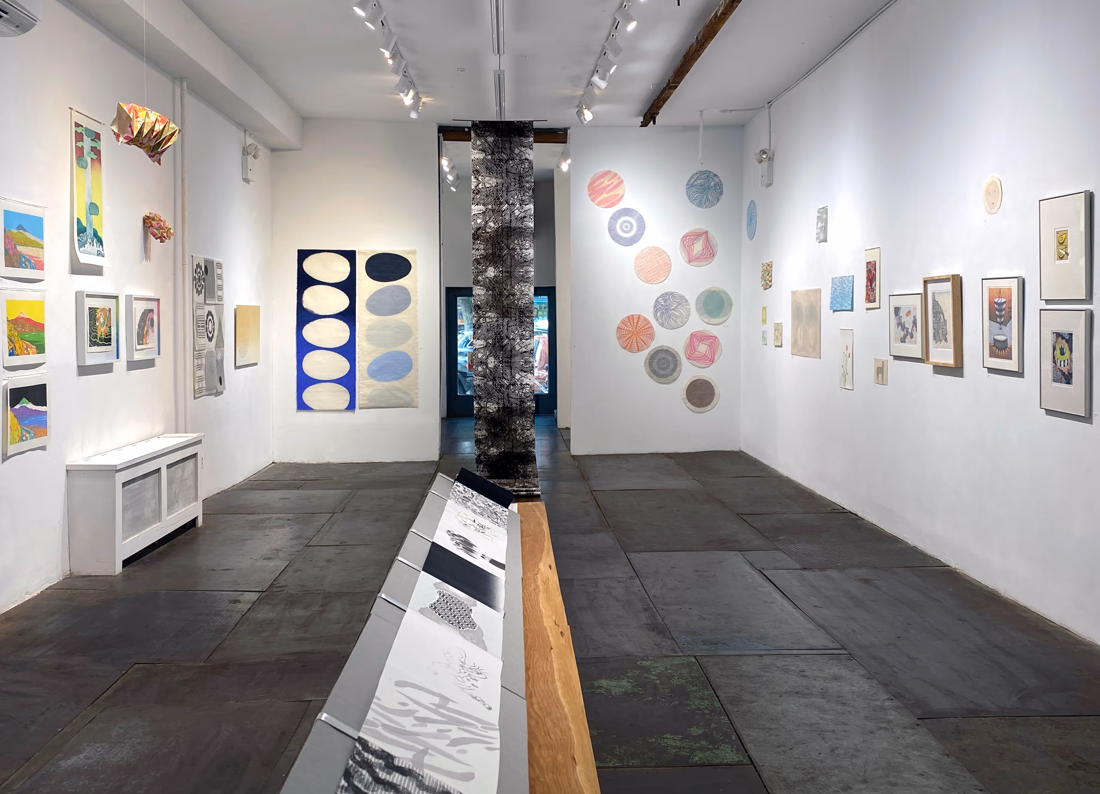 Installation view of Between Worlds: Mokhuanga, curated by the Mokuhanga Sisters (June-July 2023).