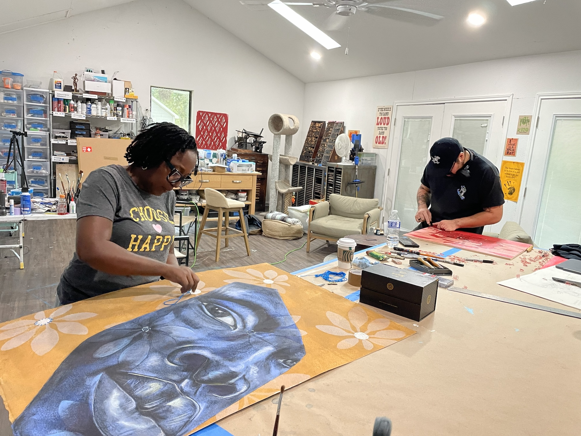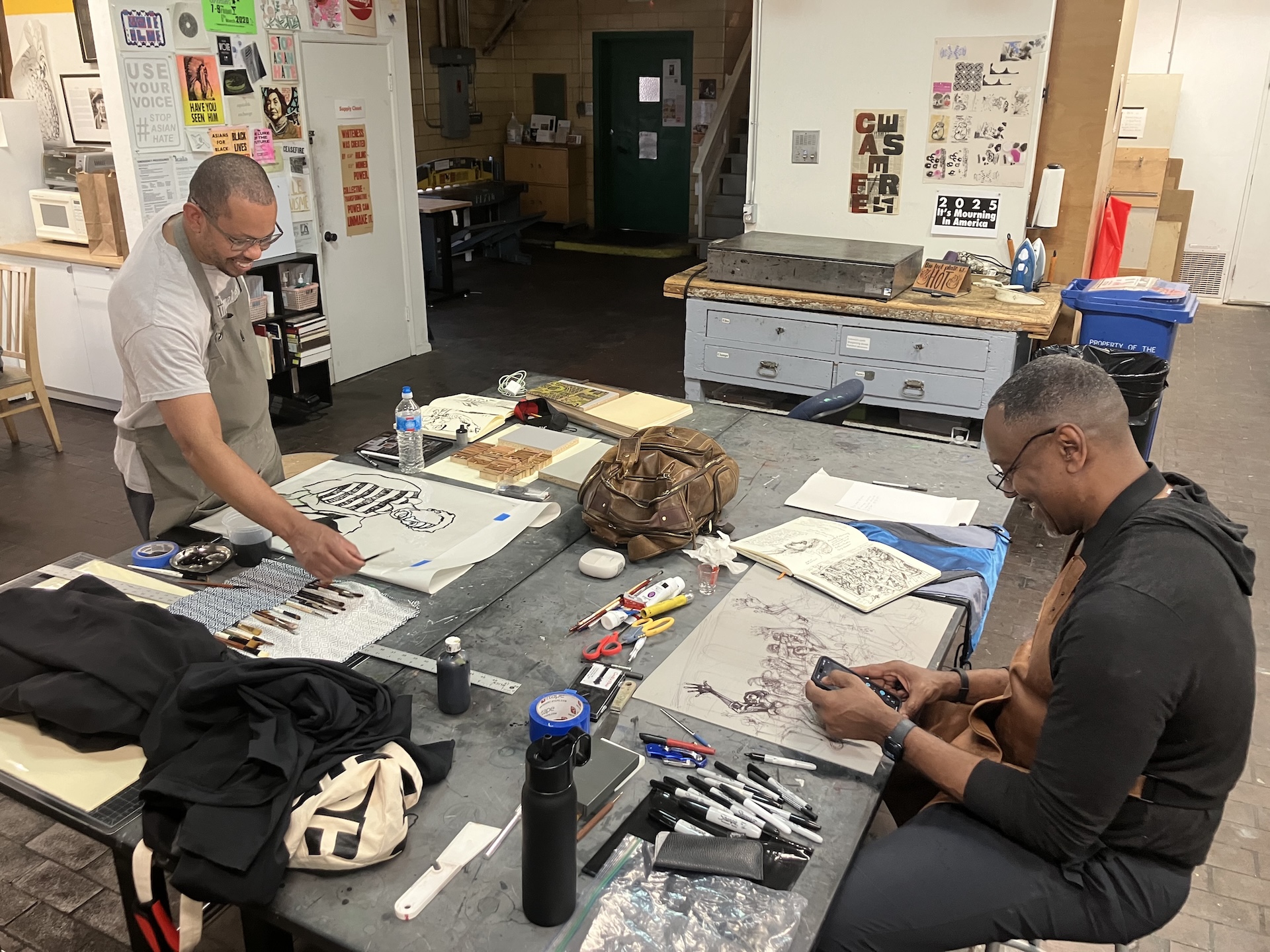 Image 1 caption: LPC Members Delita Martin and Ben Muñoz working at Black Box Press Studio.