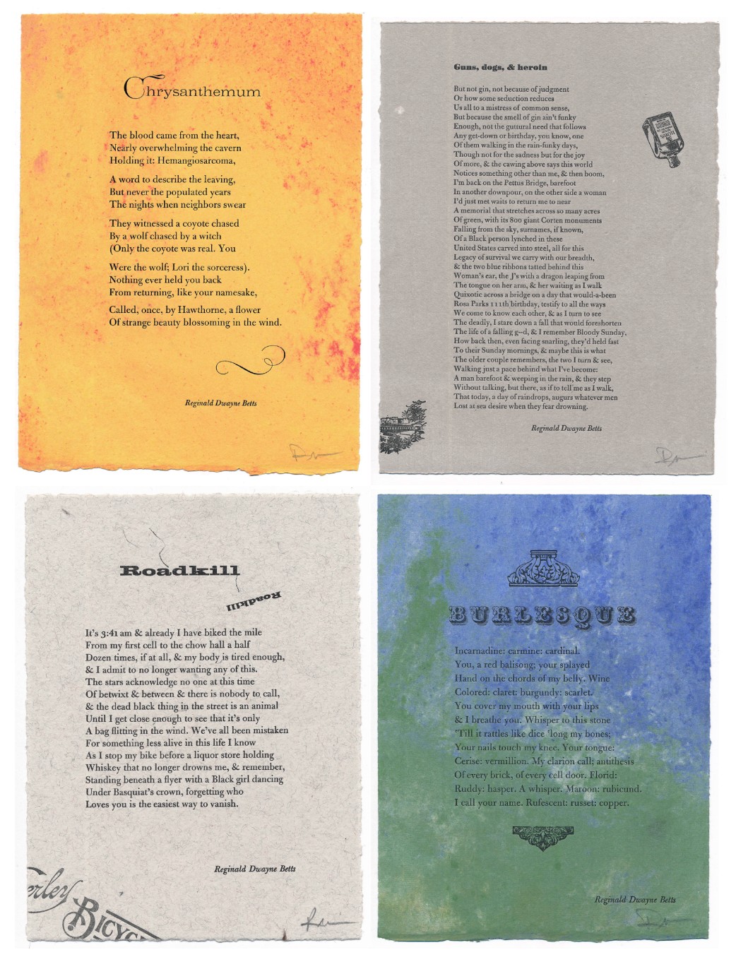 Dwayne Betts. 10 Broadsides from Doggerel, 2025. Letterpress. Each sheet: 8 x 6 in. Printed and published by Line Press Limited.