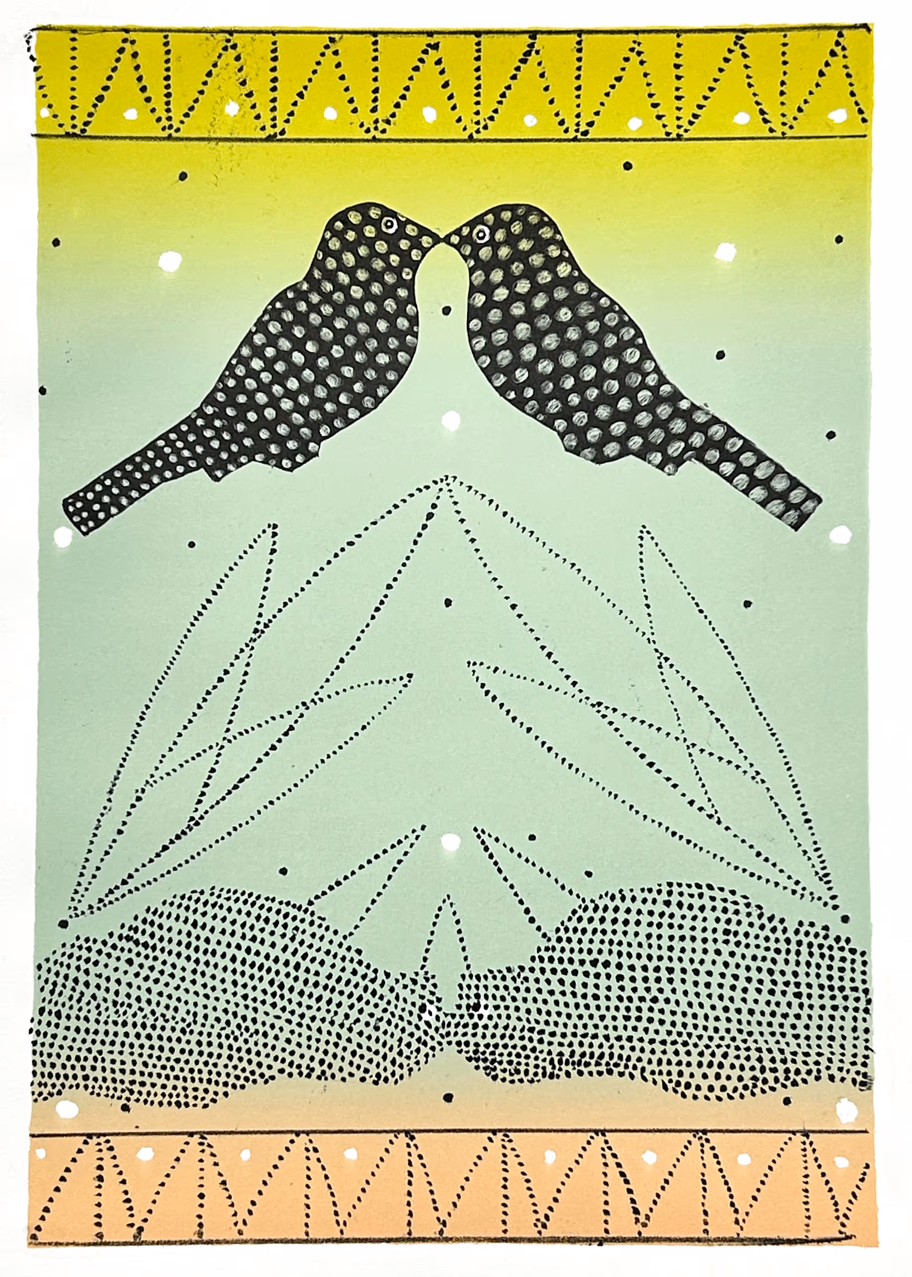 2)Detail: Elisabeth Condon, The Embrace, two-color lithograph, 31x22 inches, 2025. Published by Obee Editions & Emerson Dorsch.