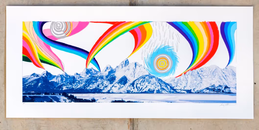 Liz Collins. Rainbow Mountains (Original), 2025. Screenprint. 14 Β½ x 32 in. Printed and published by Powerhouse Arts Printshop.