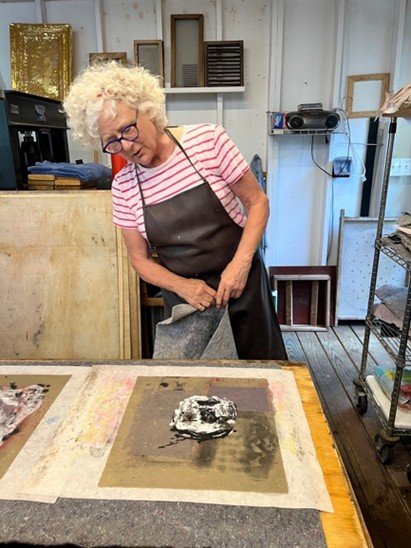 In 2016 Helen Frederick opened Reading Road StudioΒ in Silver Spring, MD to offer an intimate collaborative experience for artists interested in works in and on paper, artist books, print media, installation works, and critical conversations about visual and cultural literacy. The studio features hand papermaking as an art form and collaborative sessions for artists who want to explore the possibilities of using papermaking as a translucent material,with mixed media print media, and painterly or dimensional experience for their work. Dialogs about contemporary art that honor past traditions while inventing new concepts of materiality are always alive at Reading Road Studio.