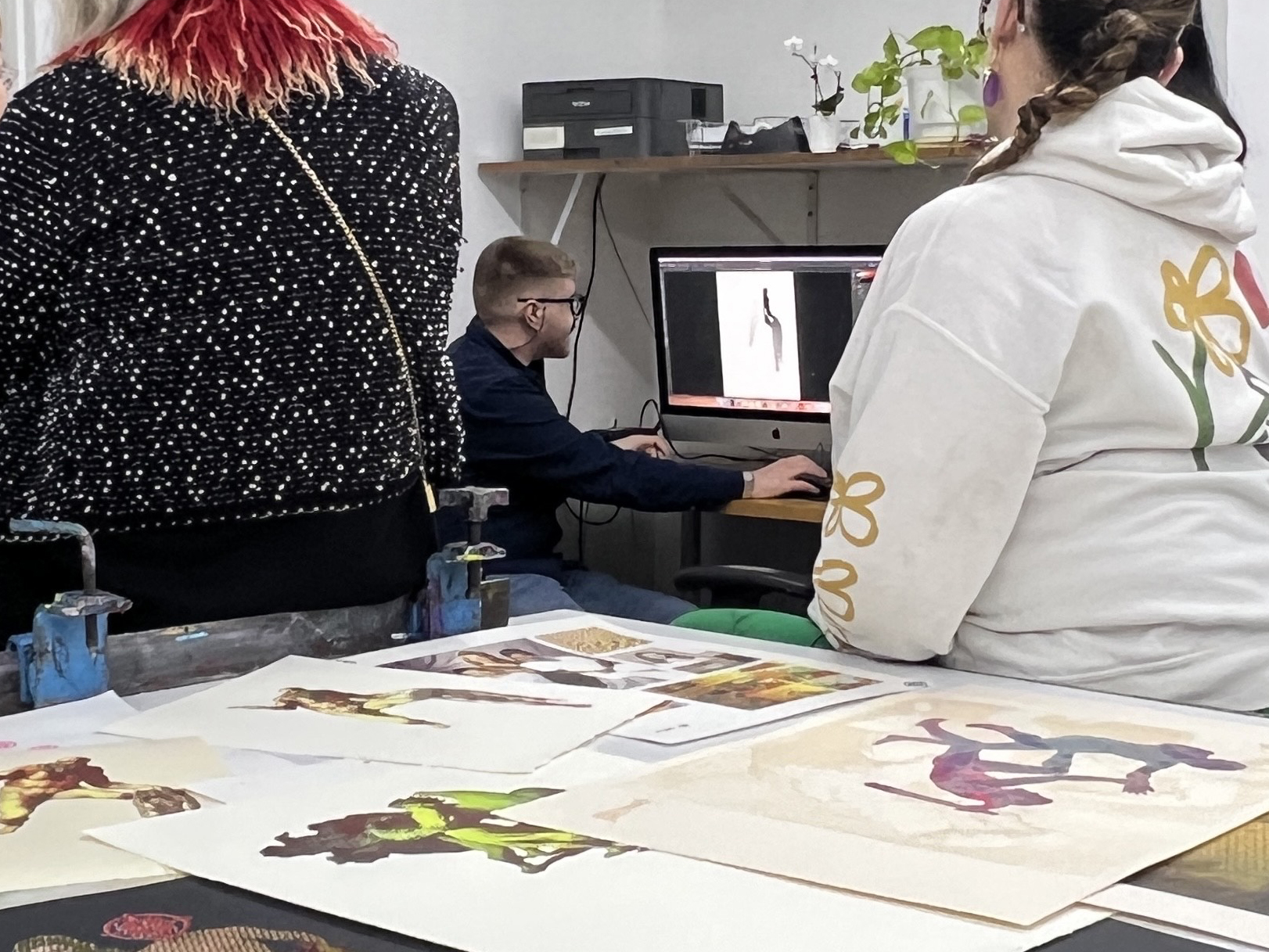 teke cocina showing his class at Lower East Side Printshop prints and pre-press techniques.