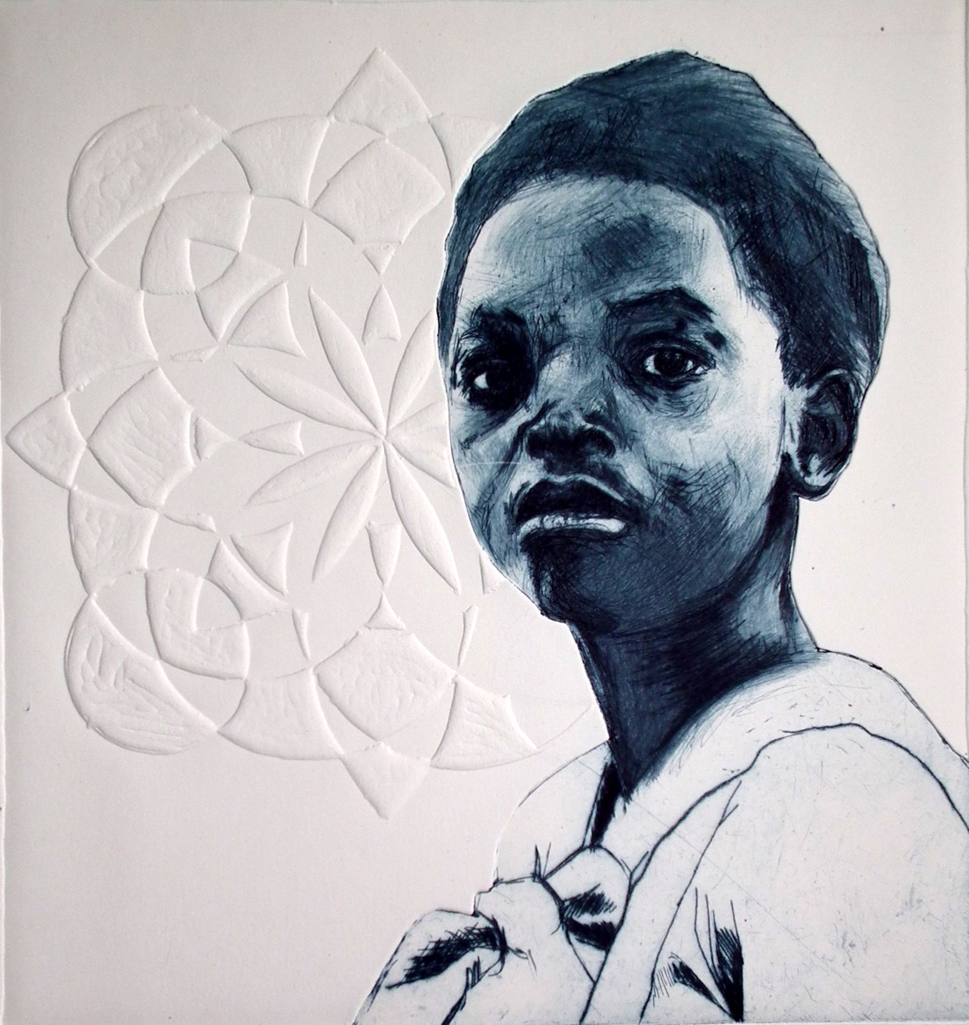 Olivia Smith. Daily Armor, 2025. Woodblock. 15 x 22 in.