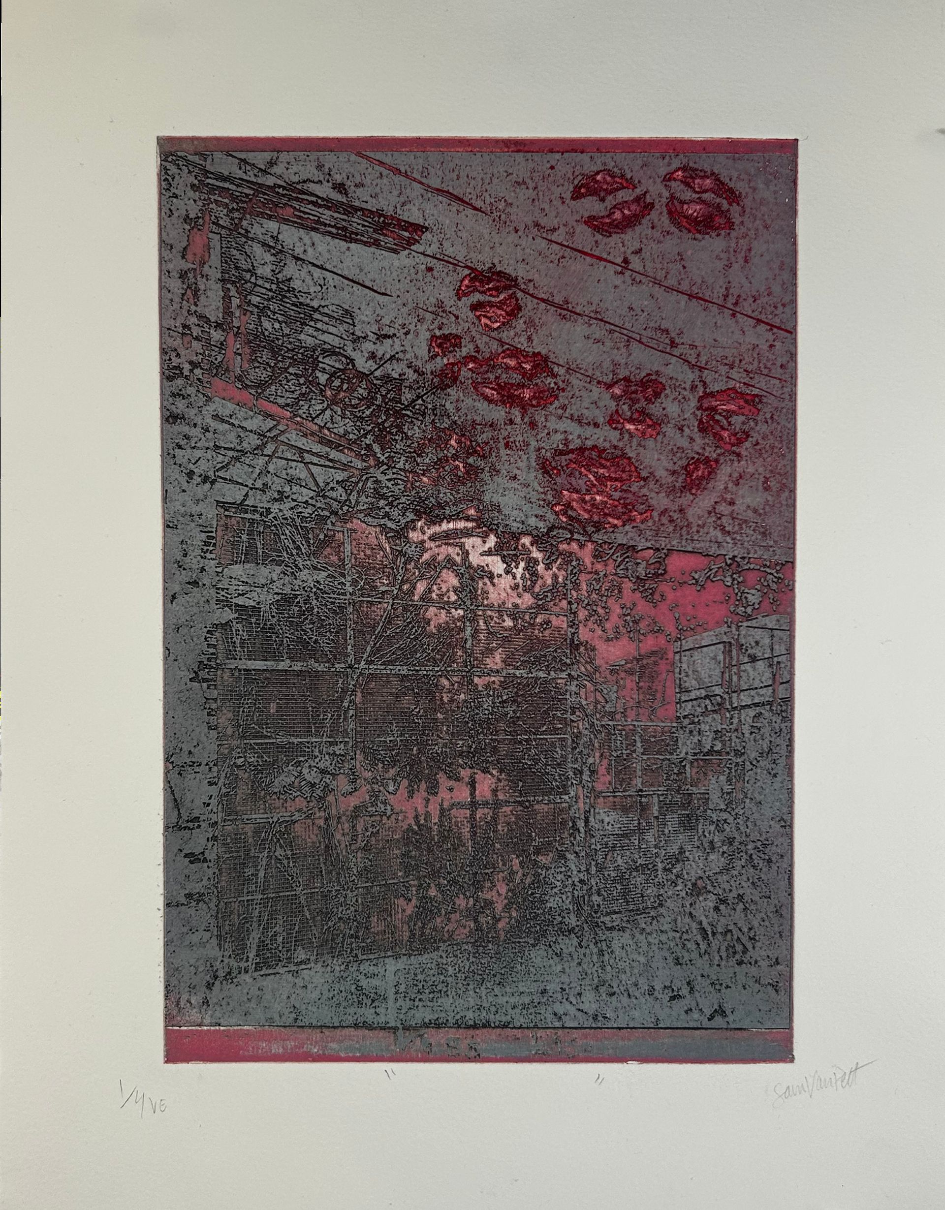 Sam Van Pelt. Kiss Kiss, 2025. Color viscosity intaglio. 12 x 16 in.