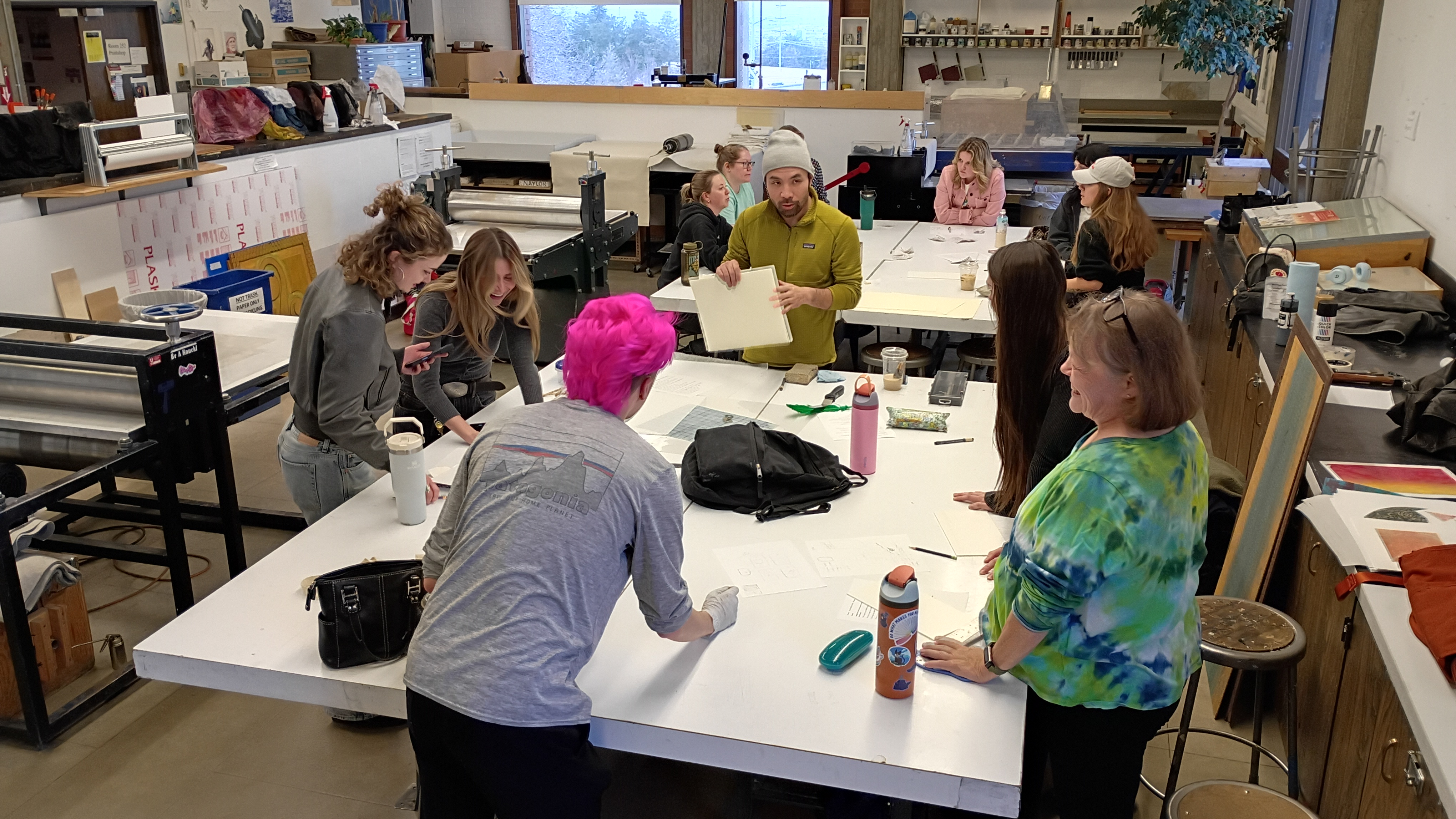 Printmaking faculty includes Justin Diggle, Holly Rios, and Aloe Corry.
