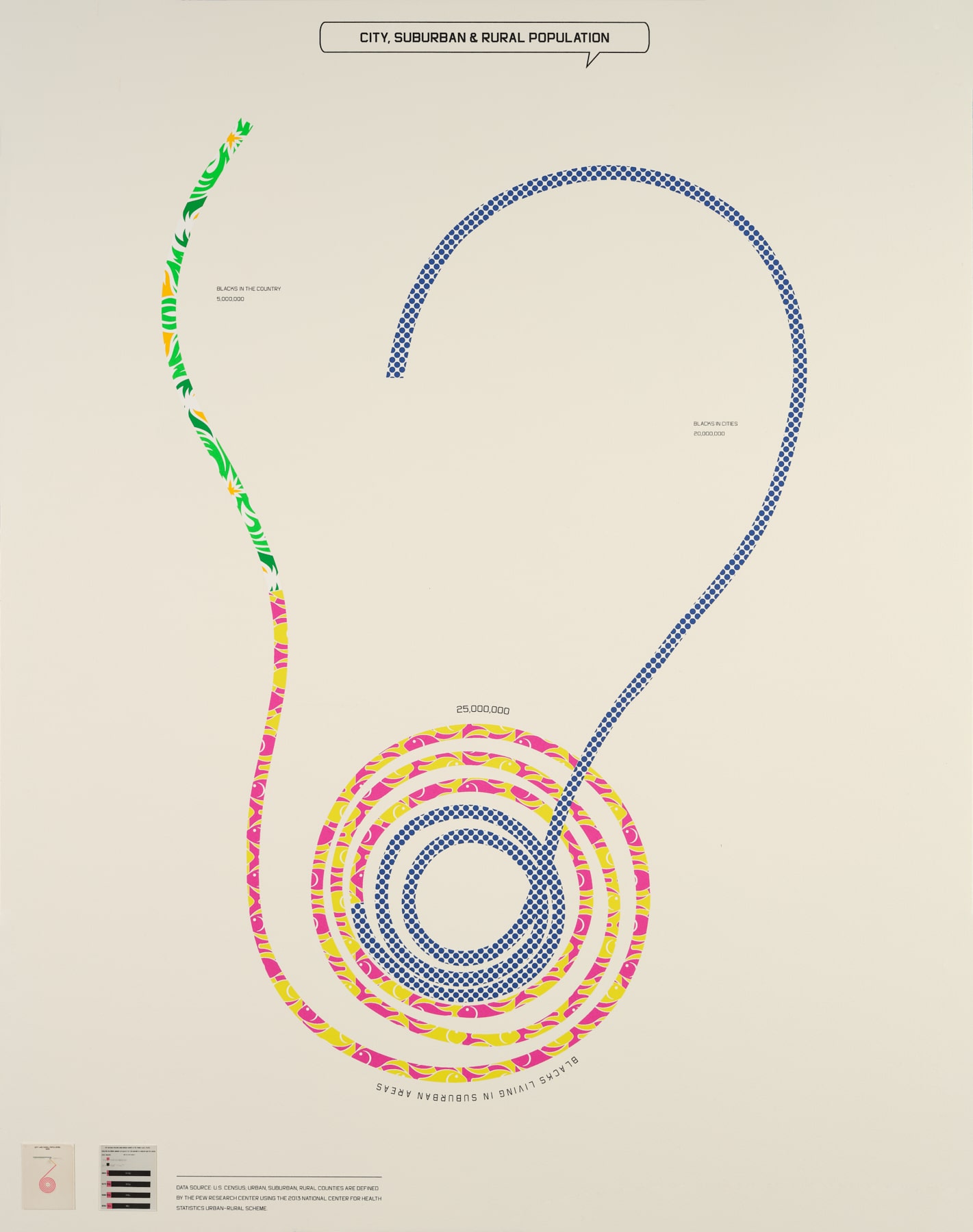 Printing Black America: Du Bois’s Data Portraits in the 21st Century follows W.E.B. Du Bois’s ground-breaking approach to his iconic data visualization illustrations. Villalongo and Ramani’s project uses national data on Black life drawn from official records such as the 2020 U.S. Census as well as hyper-local oral testimonies and archives. The resulting portfolio of 30 images was produced in collaboration with six print publishers across the U.S., including Powerhouse Arts, as well as Graphicstudio, University of South Florida, Tampa; Island Press, Washington University, St. Louis; Highpoint Editions, Minneapolis; Paulson Fontaine Press, Berkeley; and Mullowney Printing Company, Portland, OR.
