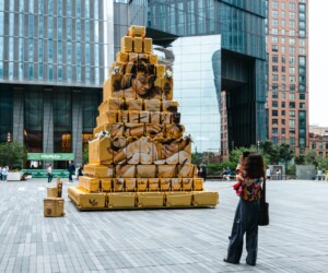 Elevar La Cultura is an immersive sculptural installation featuring a twenty-foot-tall Mayan pyramid built from the objects of everyday hustle—ice coolers reborn as icons and infused with ancestral textiles, sacred symbols, and mural work. The monumental structure is a powerful tribute to the beauty and resilience of immigrant street vendors.