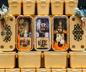 Materials: Steel, plywood, coolers, various textiles and spiritual objects