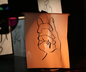 The Powerhouse Arts Print Team screen-printed 12, 60” x 48″ digital prints depicting hand gestures rendered in the form of banners on a variety of substrates that included sheer “backlit” satin fabric and clear polycarbonate, allowing for different transparencies and opacities. These banners were suspended from The Kitchen’s theater grid and were also featured in the artist’s video performances live-streamed on The Kitchen OnScreen, the organization’s new website for online programming.